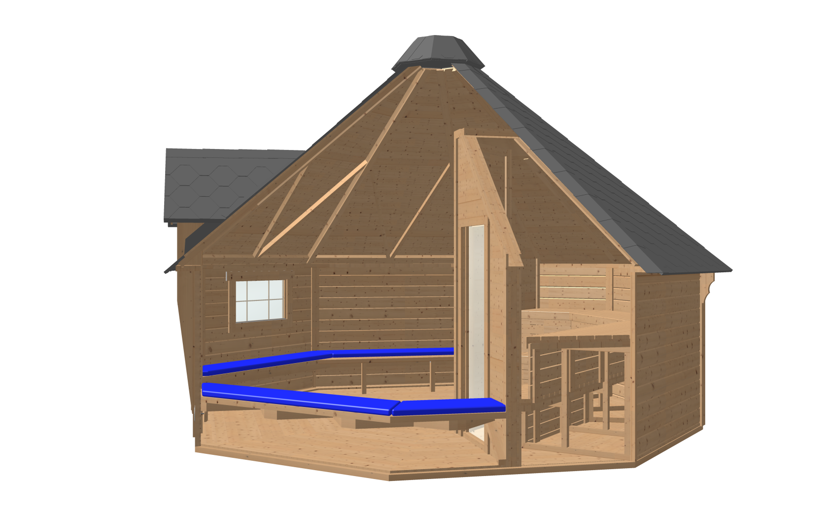 A szaunaházak a legjobb minőségű Észak európai Borovi Fenyőből készülnek tömbösített oldalfalakkal, fal vastagság: 45 mm, a Standard kivitel 18 mm vastag Borovi fa padlót tartalmaz, minden szaunaházhoz választható luxory szigetelt Padló. A tető kőzetgyapot szigeteléssel van ellátva, belülről égerfa/rezgőnyár borítással. Icopal zsindely fedés, választható színekben. Alap és metszetrajzokért vegyék fel velünk a kapcsolatot!