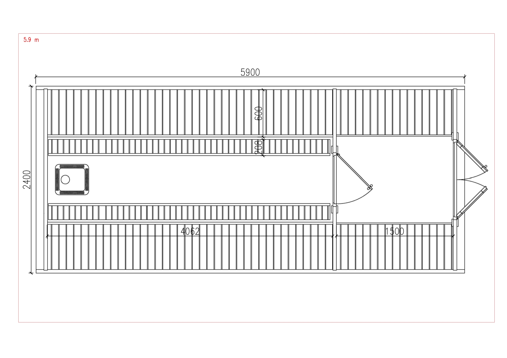 Öltöző : 1,5 m